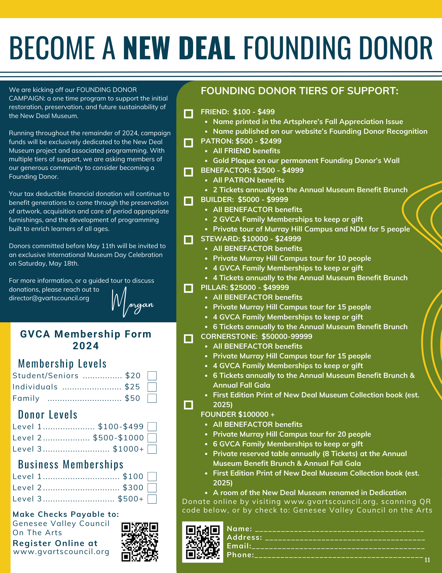 For more information, or a guided tour to discuss donations, please reach out to director@gvartscouncil.org